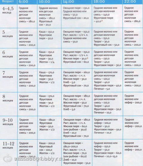 Еще несколько месяцев назад, когда готовились к прикорму, сохранила из поста вот такую табличку, ну и в общем то стараюсь ее придерживаться.