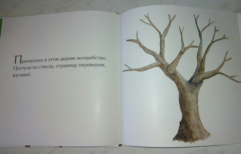 Это история про яблоню, которая просыпается после зимы. «Притаилось в этом дереве волшебство. Постучи по стволу, страницу переверни, взгляни!..»