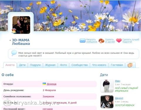 С днем рождения многомама Любашка!!! 2 февраля 2014 20:20 От сообщества Многомама и от себя лично поздравляем многомаму 3D-МАМА Любашка с днем рождения!!! Комментарии Пожалуйста, будьте вежливы и доброжелательны к другим мамам и соблюдайте правила сообщества ПожаловатьсяСкопировать ссылку Ольга Давид20 летНаринэ27 летВалерий12 лет Днепропетровск ПожаловатьсяСкопировать ссылку Леночка Юлия19 летНиколай15 летВероника12 летИлья12 летЕкатерина8 лет Хвалынск ПожаловатьсяСкопировать ссылку Ольга Валерия23 годаКарина16 летМаксим14 лет Кировск Поздравляю ПожаловатьсяСкопировать ссылку LaBruixa принц11 летпринцесса11 летпринцессочка10 летПринцессонка7 летПринцессик5 лет поздравляю ПожаловатьсяСкопировать ссылку ульяна Анастасия13 летИнна11 лет Октябрьский (Башкирия) с днем рожденья всего самого, самого ПожаловатьсяСкопировать ссылку Наташа ХорошаяМама Лилия17 летМирослав10 летЗаринка7 лет Днепропетровск ПожаловатьсяСкопировать ссылку Катерина ДочечкаКрошечка23 годаПервыйМалыш13 летВторойМалыш13 лет ПожаловатьсяСкопировать ссылку Вероника Артёмка14 летДимочка11 летМаксимка7 летЖенёк5 летВладик3 года ПожаловатьсяСкопировать ссылку Анастасья Ариадна13 лет Георгиевск ПОЗДРАВЛЯЮ!!! ПожаловатьсяСкопировать ссылку гиша Санкт-Петербург С днем рождения Счастья любвьи здоровья много много денег ПожаловатьсяСкопировать ссылку Валентинка Альбина11 летОлег10 лет Коломна ПожаловатьсяСкопировать ссылку ilona с днюхой тебя!!!!!!! ПожаловатьсяСкопировать ссылку Татьяна Мумжа Злата13 летАрина29 летЭдуард22 года Актобе ПожаловатьсяСкопировать ссылку ВЕСНУШКА Анастасия21 годАнна19 летНадежда15 летЕлена12 лет Томск ПожаловатьсяСкопировать ссылку Татьяна Миронова Пенза Показать ещё12 Следующая статьяС днем рождения многомама Светлана!!!Актуальные посты3 месяца боли в животикечерез сколько часов после селедки можно пить молоко