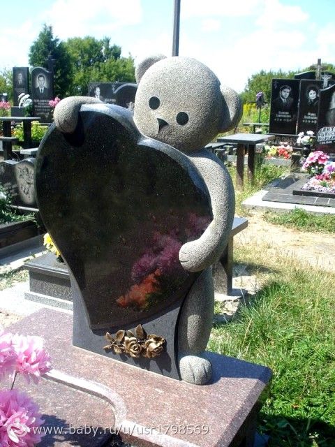 Я живу в стране мужа, у нас там семейный склеп. Малыш похоронен с другими родственниками рядышком. Там не принято носить цветы или как-то украшать, но мне так хочется. Один раз только муж отвез туда, цветы положили и больше не везет отказывается категорически — за меня переживает. Но если бы могла, то я бы поставила ангелочка из гранита.