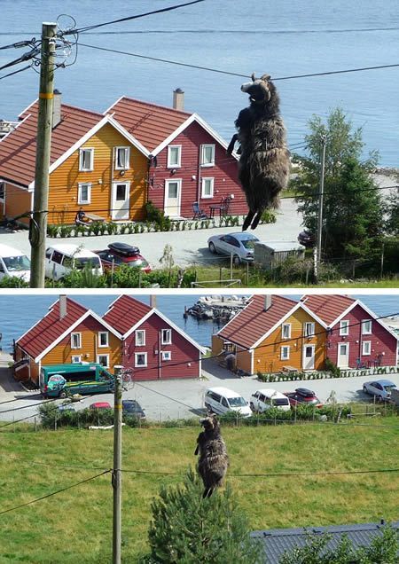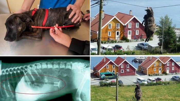 1. Овца съехала по электрокабелю, зацепившись за него рогом. Эта несчастная овца в действительности оказалась полным бараном. Ну, вот как можно было зацепиться рогом за кабель электропередачи? Животное заметили, когда оно начало блеять, повиснув в пяти метрах над землей. К счастью, овца не была заземлена, поэтому ее не убило током. Инцидент произошел в маленьком норвежском городке Хельгойсинд. Туристы засняли на видео весь процесс спасения животного. Овцу заарканили веревкой и затащили обратно до уровня земли. Отдыхающим понадобилось около часа, чтобы спасти нерадивую овцу, но, в конце концов, животное осталось целым и невредимым. Судя по всему, овца паслась на холме и попыталась дотянуться до травы, растущей на обрыве, но вместо этого зацепилась рогом за провод и съехала вниз к тому месту, где до земли от провода расстояние было уже более пяти метров.