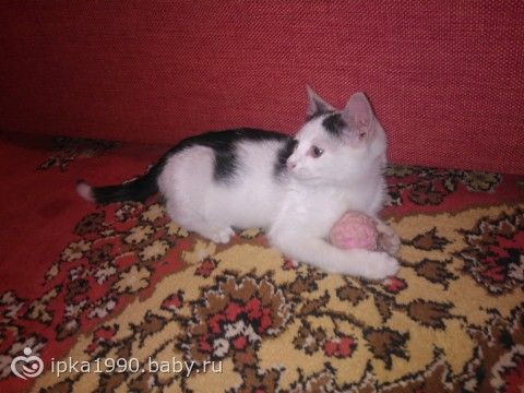 рОх, девочки, вот это нежданчик случился)))))Сын и муж гуляли вечером и домои пришли с сюрпризом.А точнее с котенком на вид 1.5-2 мес.Сын был так впечетлен, что не смог с ним расстаться)Кошак бодрячком прошел к нам, поел прилично кошкин корм, попил молоко, поиграл всеми игрухами нашеи Мотьки.Она была в шоке.ЗАТЕМ!!! Пошел в ее горшок и сразу сделал два дела, я офигела.Мотька помню нам всю квартиру первое время обоссывала и мы даже приучательк горшку впокупали(((Котенок это тусил у нас во дворе периодически 2 недели.Вобщем сын был в мега восторге от него))))А Мотька-в шоке))))Кошак оказался прям почти роднои Мотин брат))))Супер активный, также носится за мячиком и таскает его в зубах, короче у нас еще 1 кото-пес)))муж поехал с ним в ветеринарку.Кошаку проставили прививки, вытащили ушных клещеи и сказали завтра еще прививку поставить и проглистовать на всякий случаи(ну это и так понятно)ветеринар сказала, что паца наш наглый)))))))))))а в начале я думала это девочка и хотела назвать фасолька)))вобщем решила подобрать имя по дате попадания кошака в наш дом и получилось, что 4августа Родились Луи Армстронг, Барак Обама и Билли Боб Торнтон))Так что я вся в раздумьях ))))