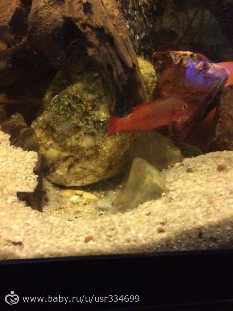 Фото 2. Это уже другая рыба. Вот она под вопросом)была такая, достала рожать и мы сбагрили в дет сад))