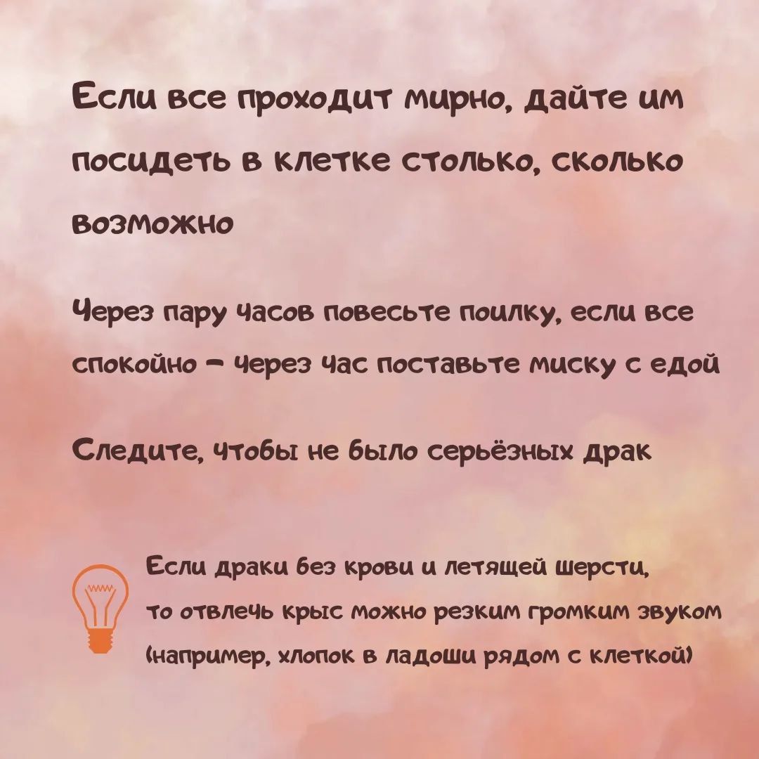 У нас было две девочки сестренки, умные, ласковые животные, видно что ориентированы на человека, но по чистоплотности Незнаю, наши ссали везде, и там где спали, все гамаки были сгрызаны и обоссаны, постоянно меняли. У одной была опухоль, у второй какая-то их частая болезнь толи пневмония толи что, короче постоянно чихала и иногда был носик в крови, очень жалко было их(( я прочитала кучу форумов и там многие писали, что они тяжело умирают, поэтому когда им было совсем уже плохо мы их усыпили, было очень грустно, больше никогда не заведем. К крыскам гораздо больше привязывешься, от них есть отдача, они дочку очень любили, постоянно на руках сидели. Ветеринар сказал как то нам, собаки нужны показать любовь, грызуны показать смерть…