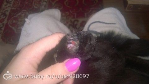 Когда забрали была опухшая лапа с ранкой, промыли перекисью на ночь. Вчера хлоргексидином… От него ранку прорвало и пошел гной, промывали несколько раз, вроде даже стал наступать на нее. Сегодня утром проснулась вот такая беда у нас.