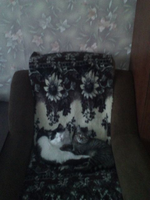 Ой у меня точно такие же коты) цвет в цвет) а собачка смешная) пусть вам радость доставляет)