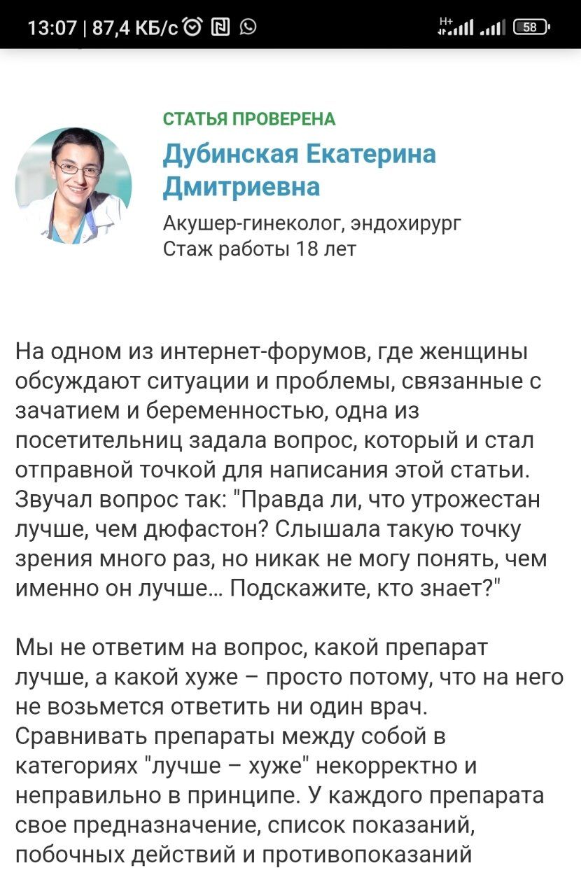 26 апреля 2023 07:17 +3 Наткнулась на такую статью: ПРЕПАРАТЫ ПРОГЕСТЕРОНА, что выбрать? ДЮФ или УТРИК?