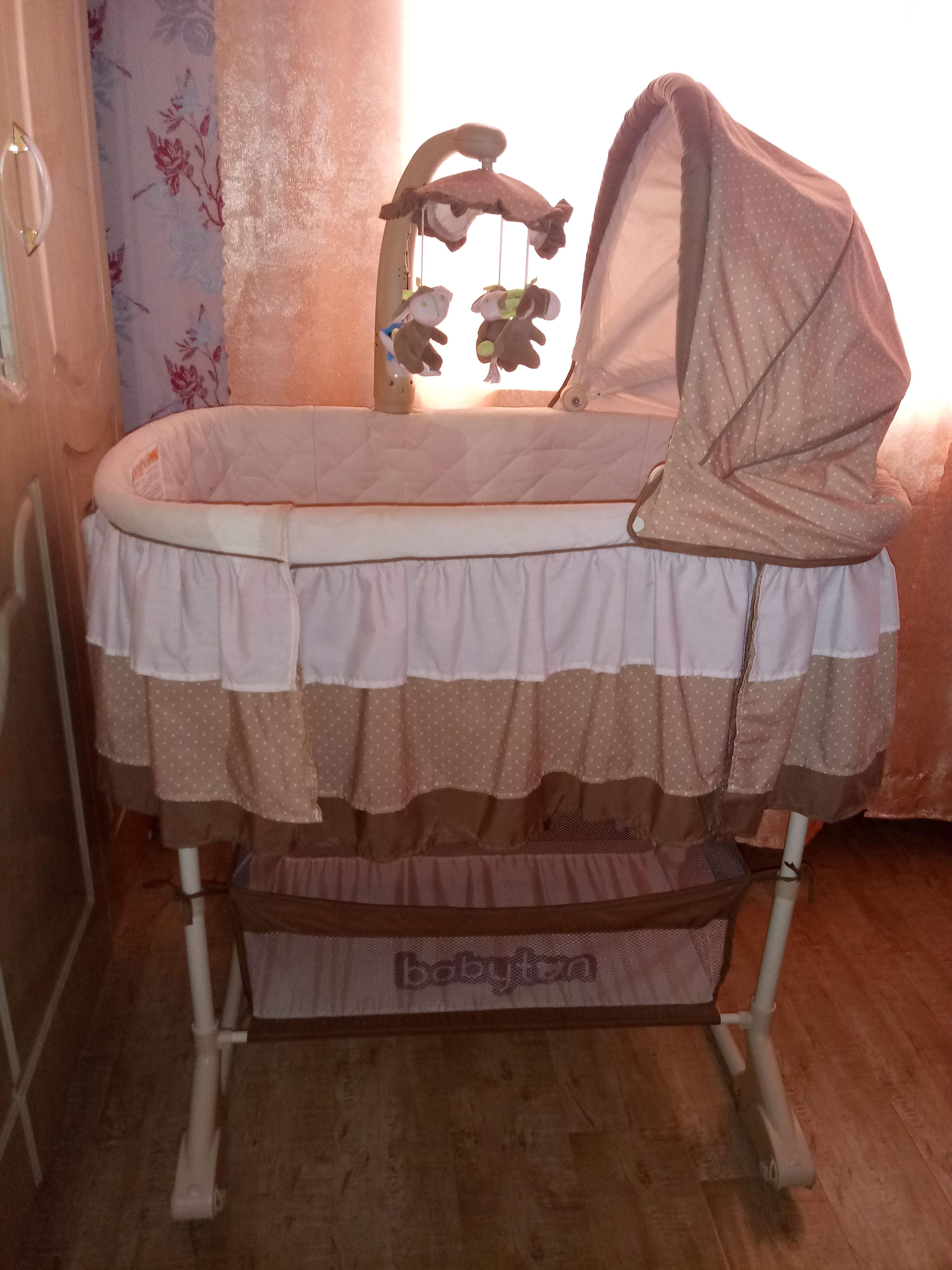 Продаю колыбель Babyton с функцией укачивания может использоваться как прикроватная детская кроватка и кроватка-люлька примерно до 6 мес. Компактная, милая и очень удобная в первые месяцы жизни малыша.