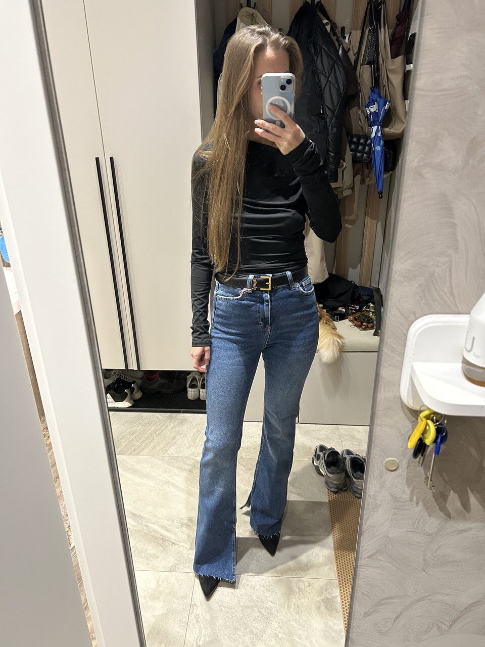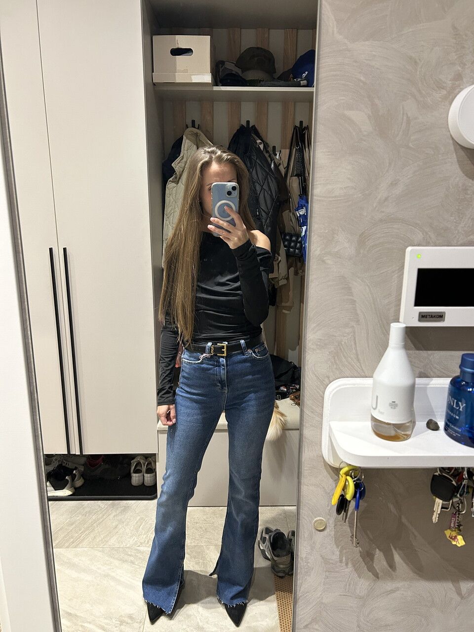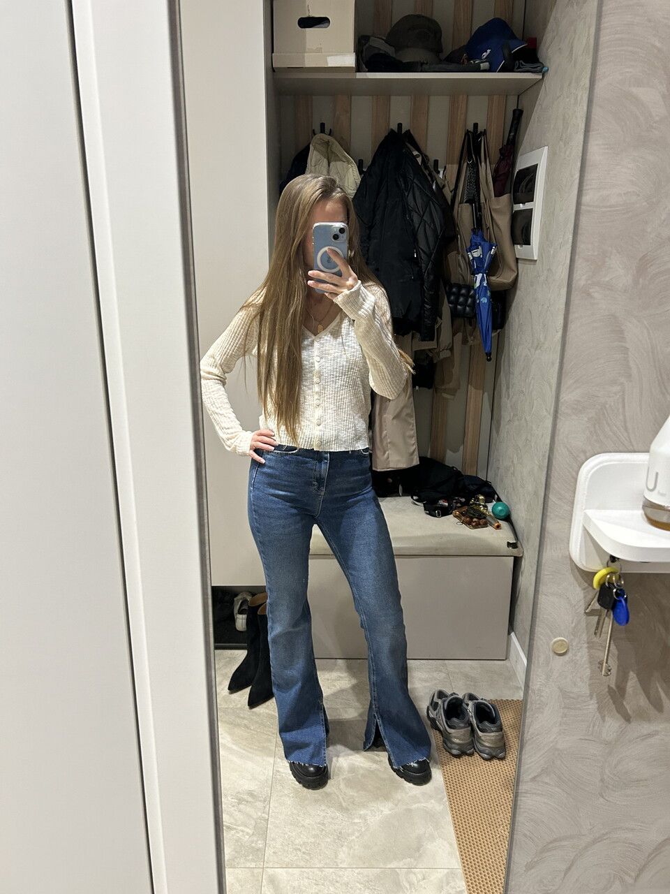 5 октября 2025 18:57 +4 Как думаете оставлять джинсы или нет? Смущает что посадка высокая и шов длинный между ножек уходит вниз