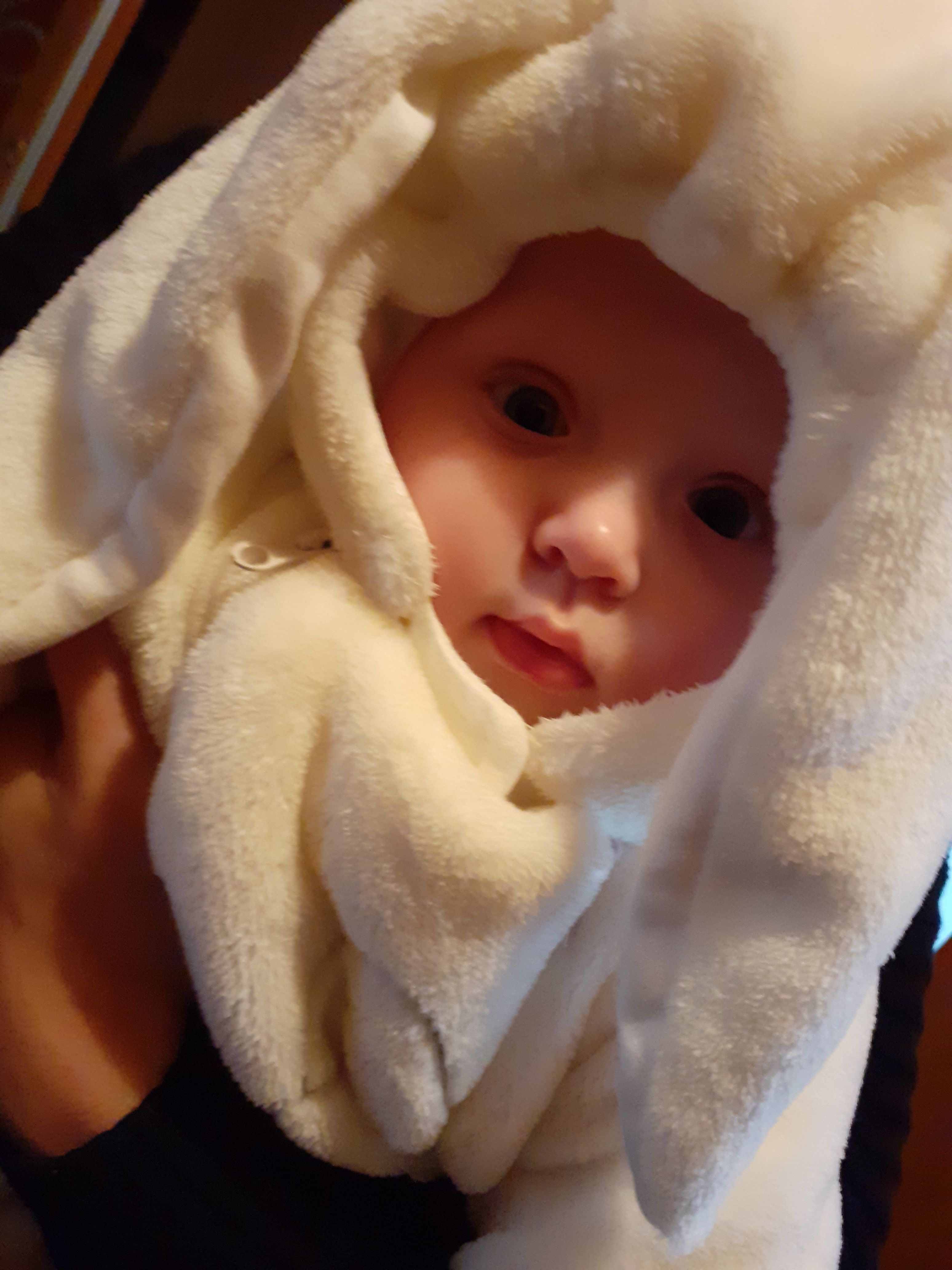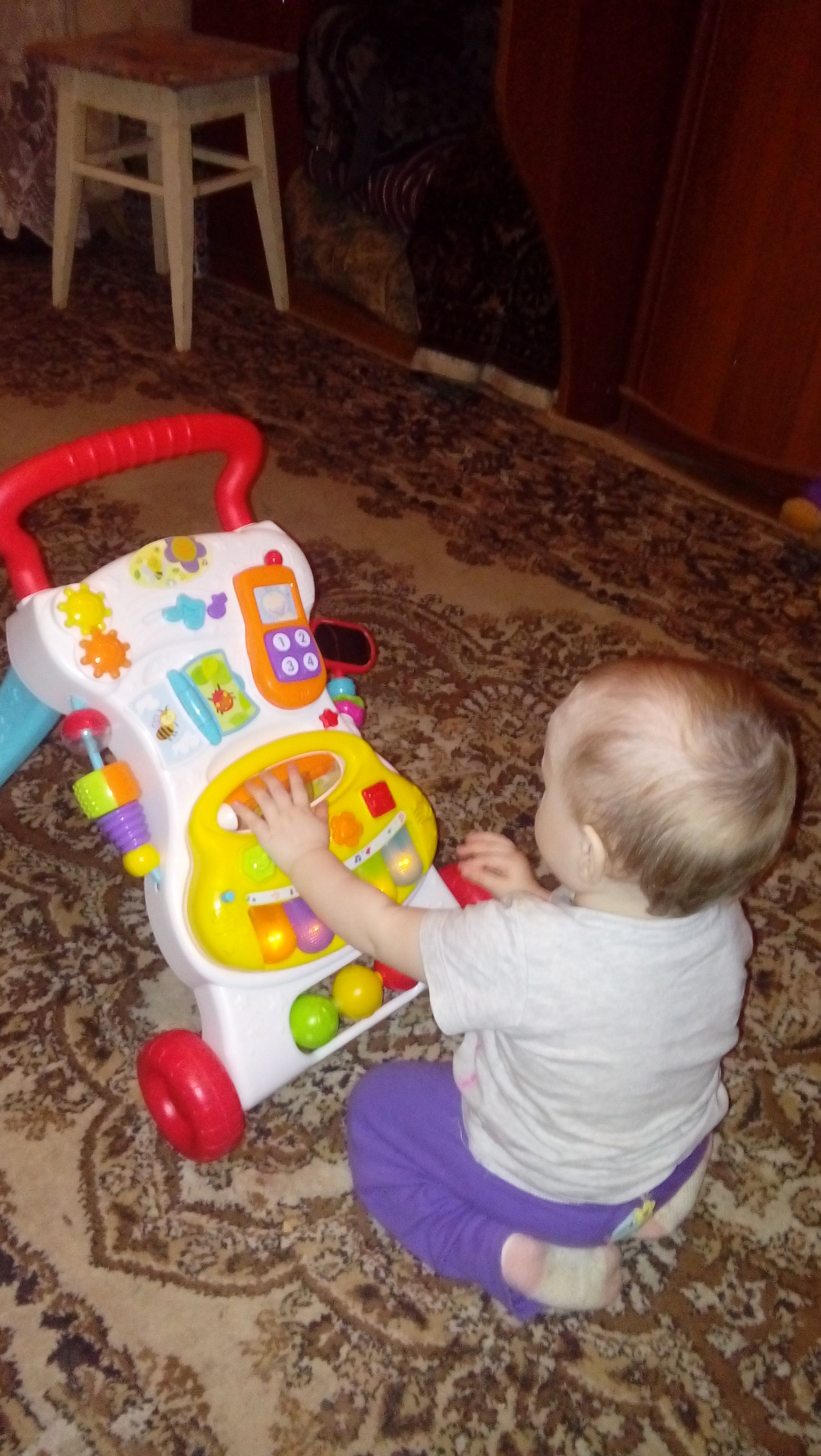 У нас уже вылезли два зубика, мы самостоятельно встаём за счёт бортиков, и пытаемся по ним передвигаться. Сидим уже уверена. Ползем ещё не совсем точно не совсем правильно.