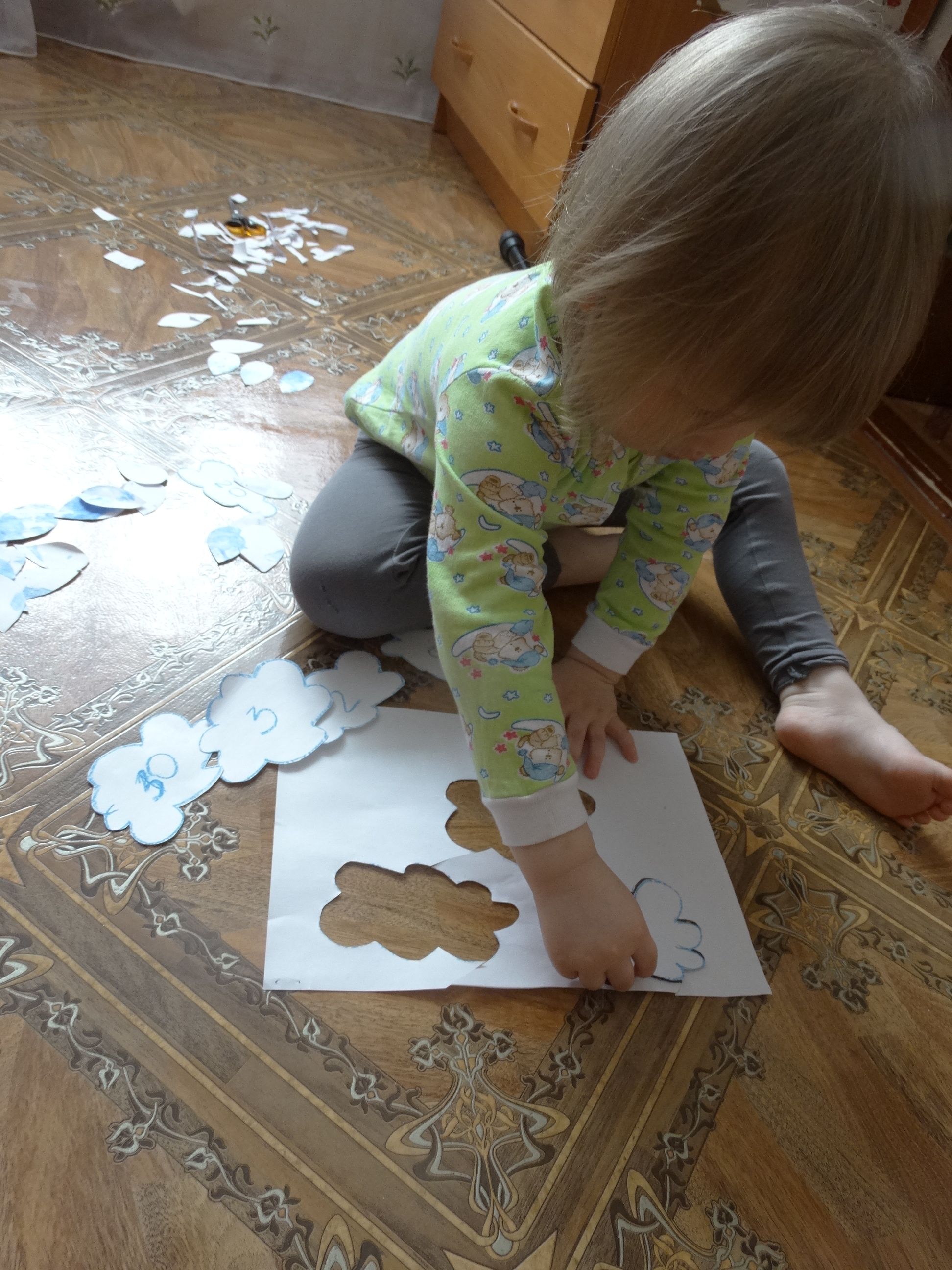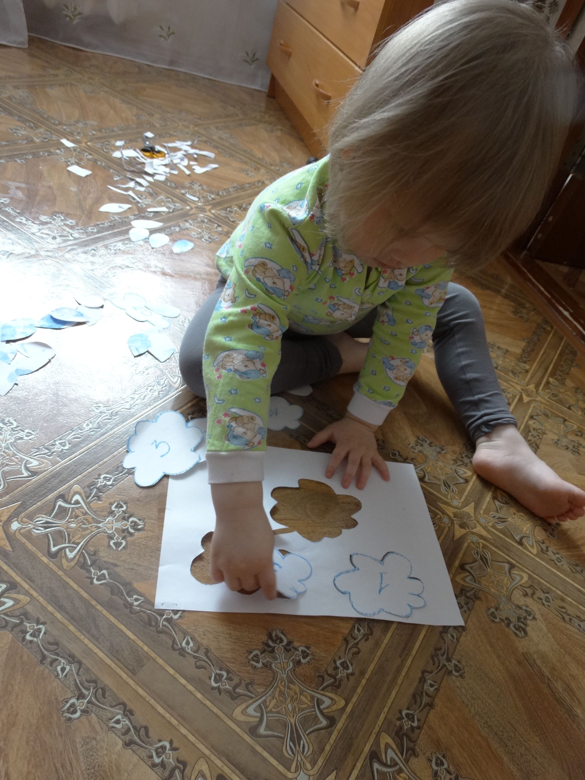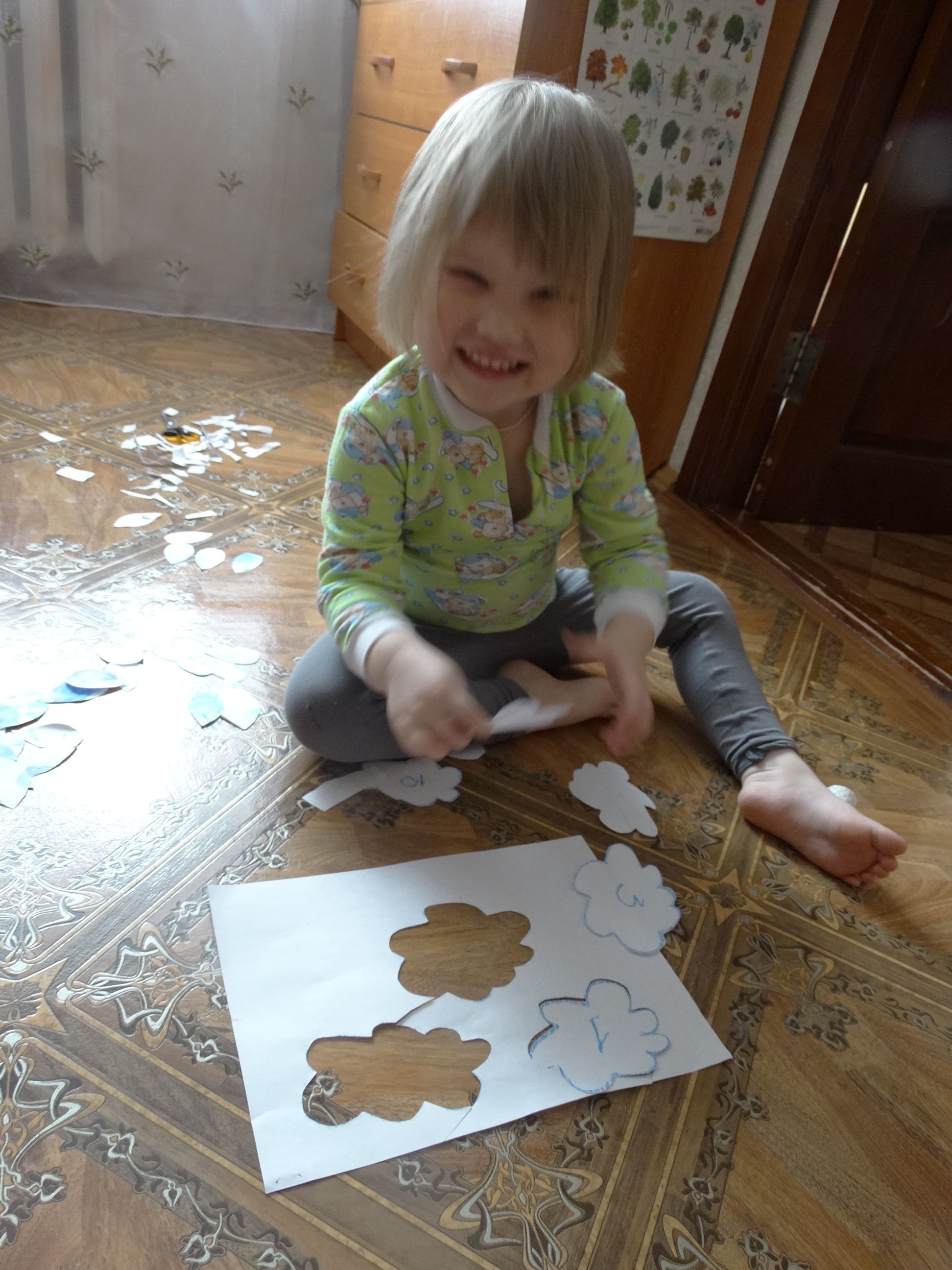 Сегодня потанцевали под музыку с зонтиками Далее была идея собрать на синельную проволоку бисер по цветам радуги. Но т.к. бисера нужных цветов не нашли, пришлось просто собрать дождинки на проволочку Также была идея найти все капельки для тучек … Читать далее