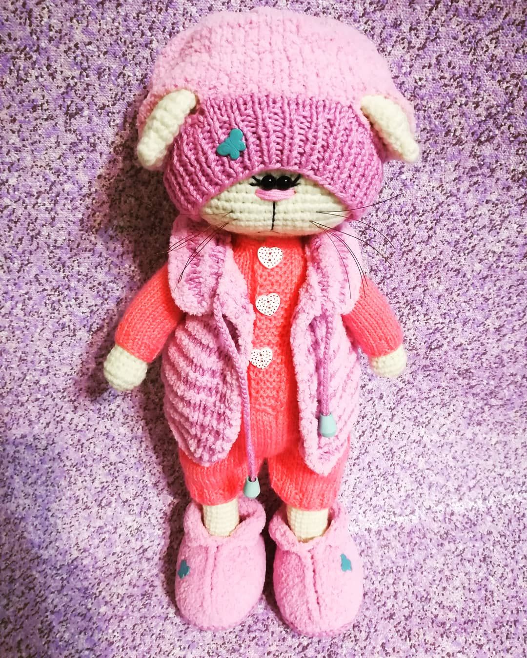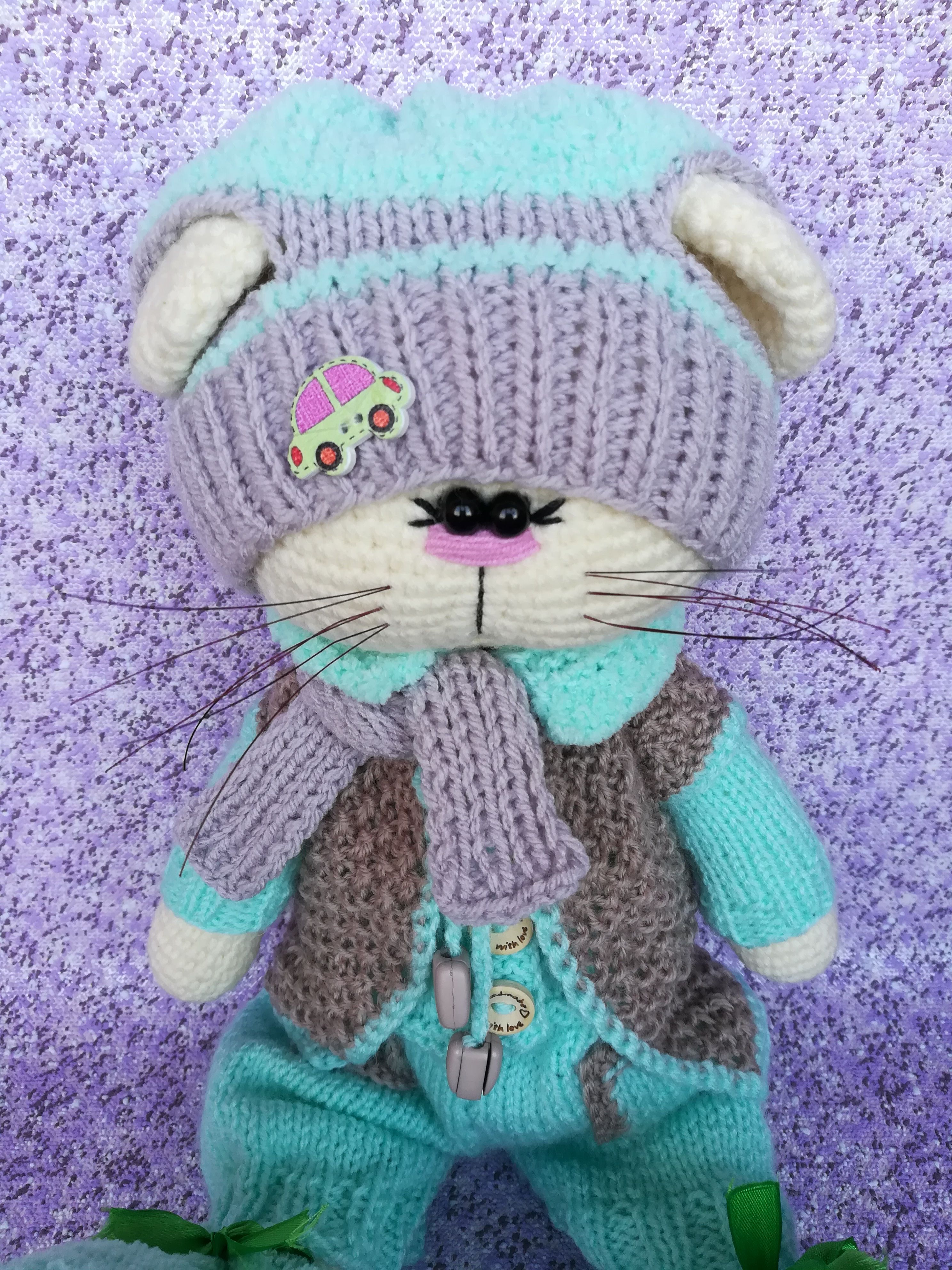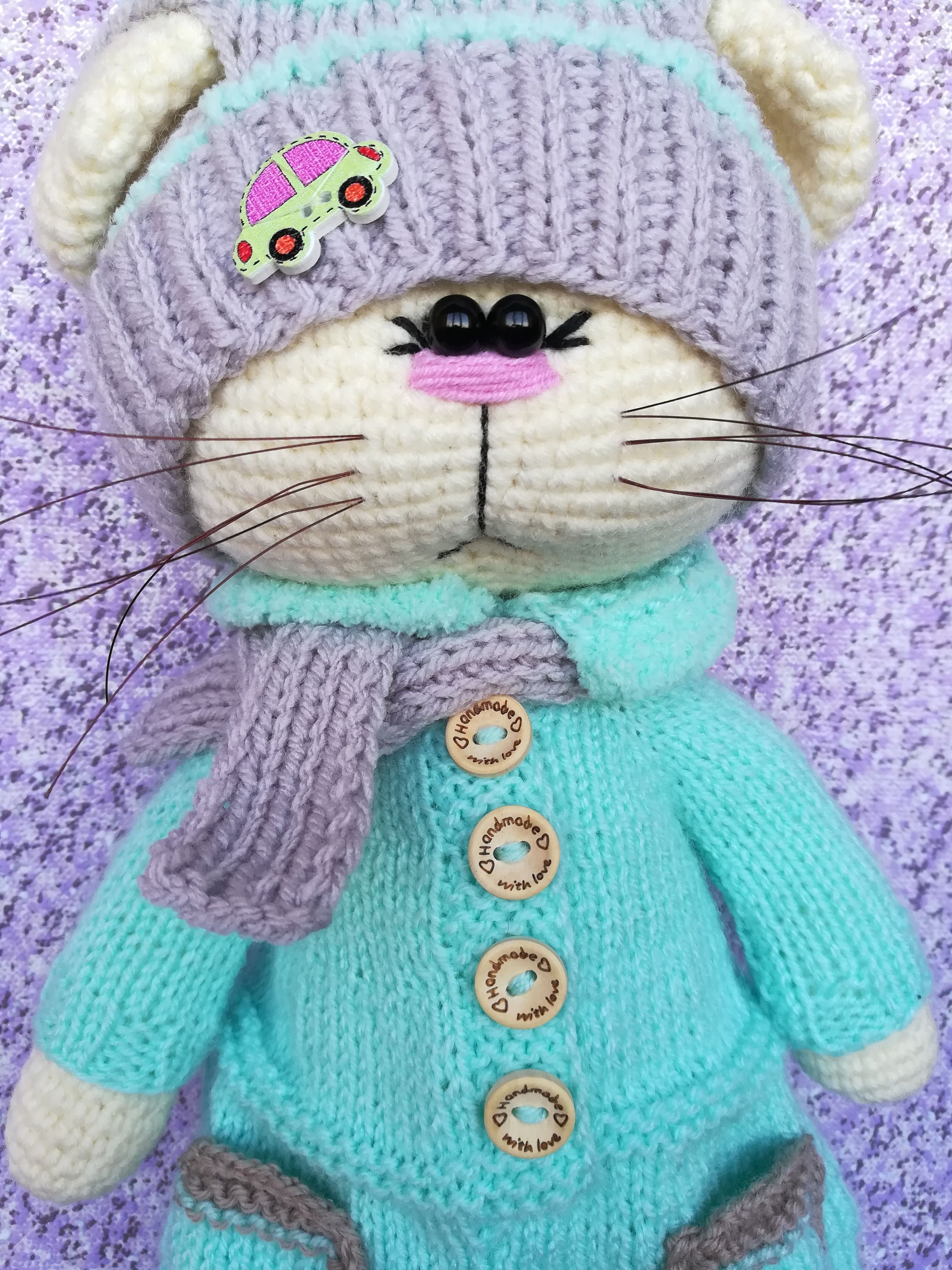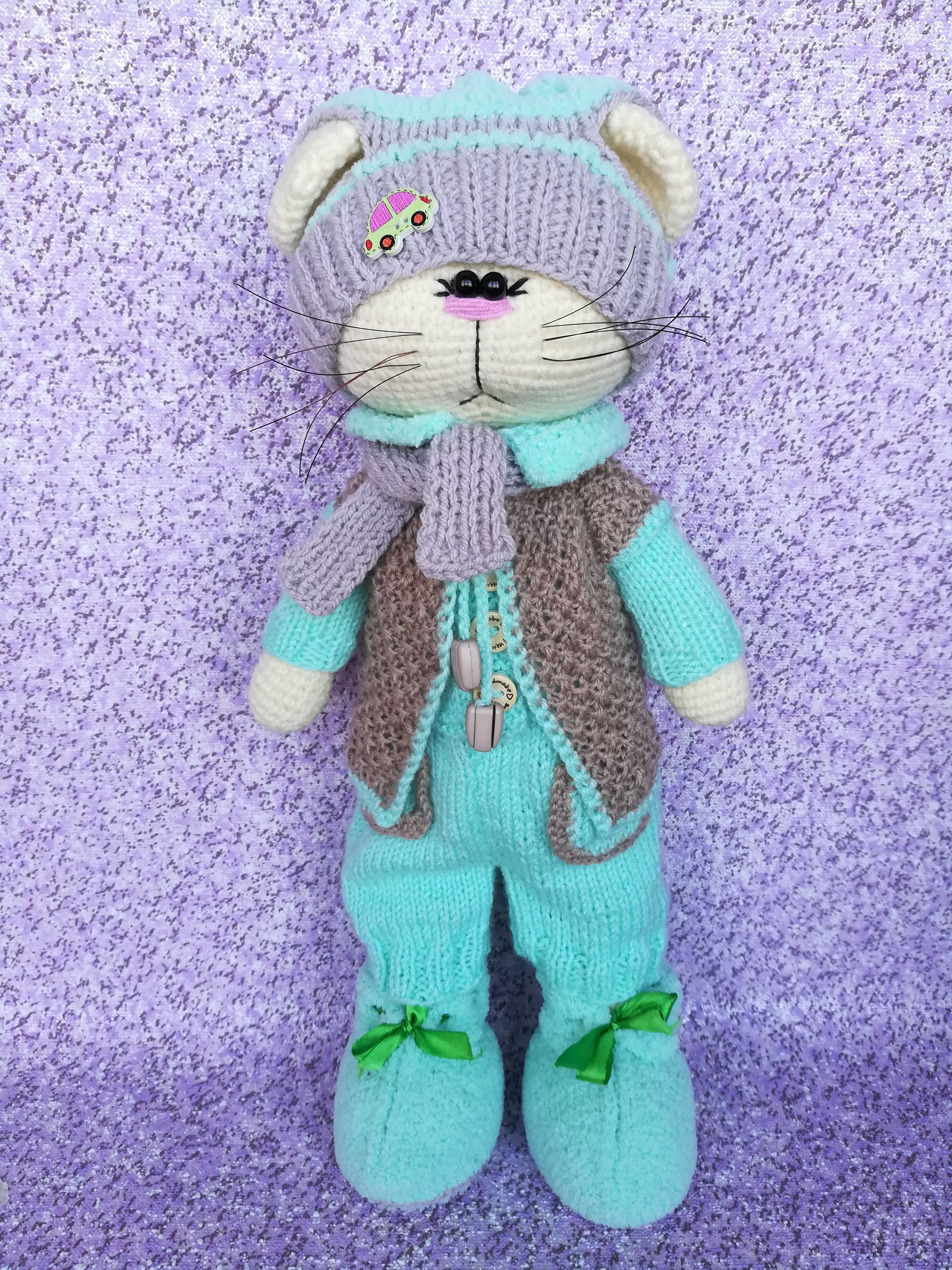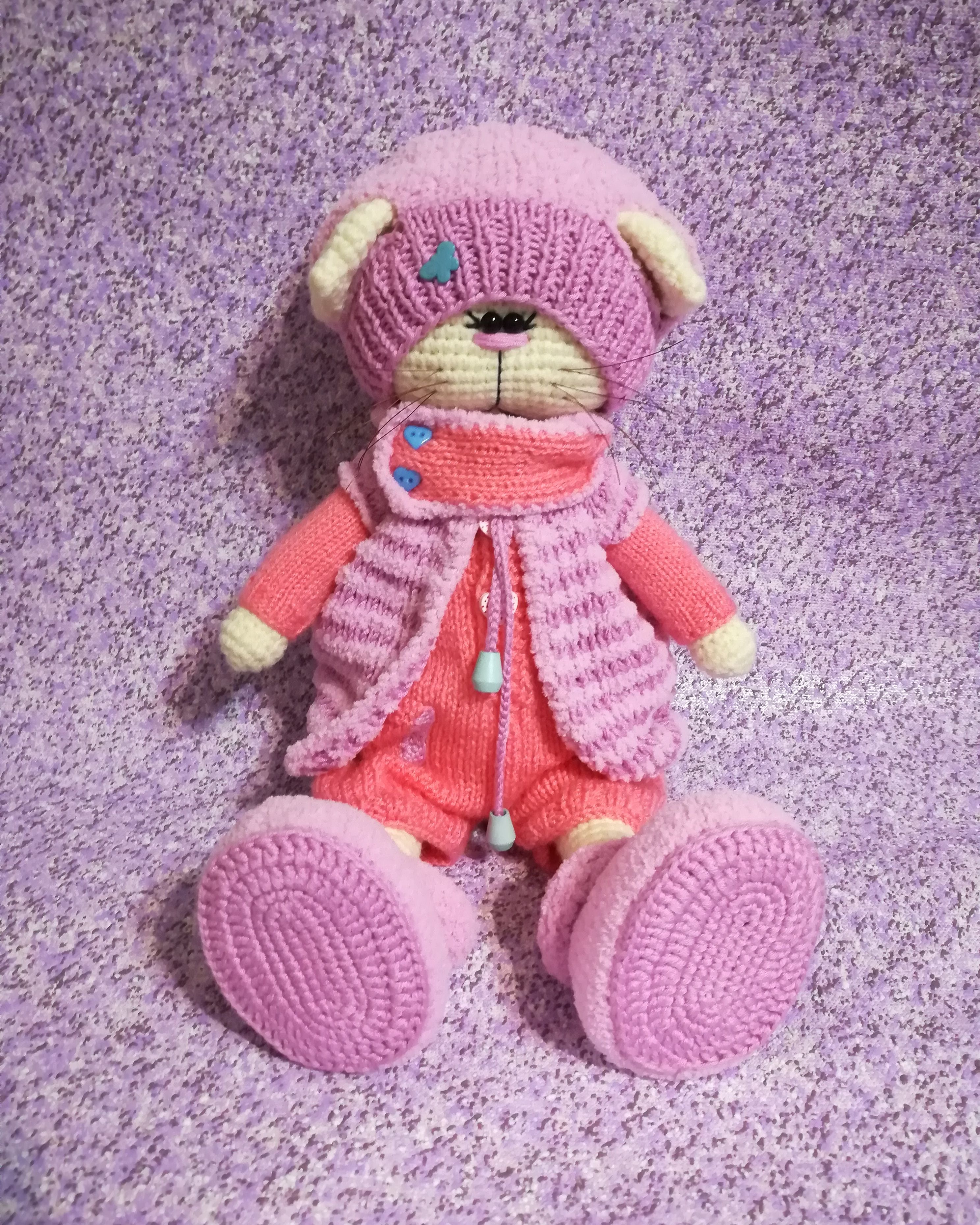 Вязаная игрушка 36 см. Кошечка ищет дом и заботливые маленькие ручки). Одежда связана из хлопка. Всё снимается,на пуговичках. В комплекте сумочка и шарфик для прогулок). Может стоять без опоры. Цена 2000р + почтовые расходы(250-300р) по России. Страница … Читать далее