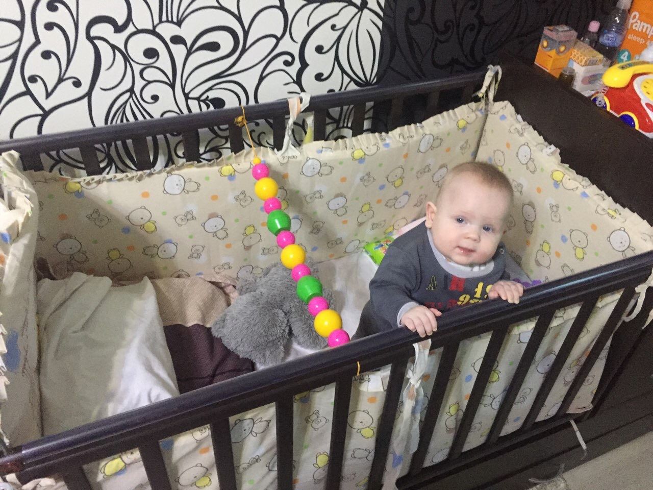 Сегодня увидела как сыночек держится за одну руку , а потом увидела , как он ходит по кроватке ? ох, а дальше только интереснее ))