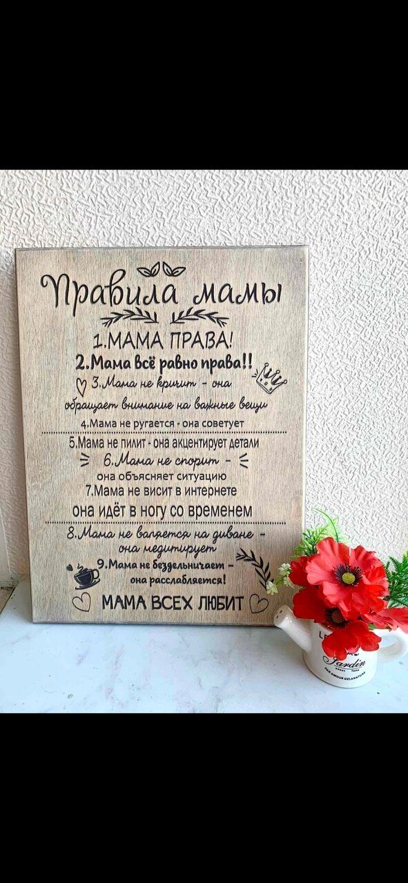 Добрый день! Вашему вниманию хочу предложить оригинальные изделия для кухни! Это правила мамы, правила кухни, часы, чайные домики, повозка для специй, часы! Есть много других вариантов! Обращайтесь
