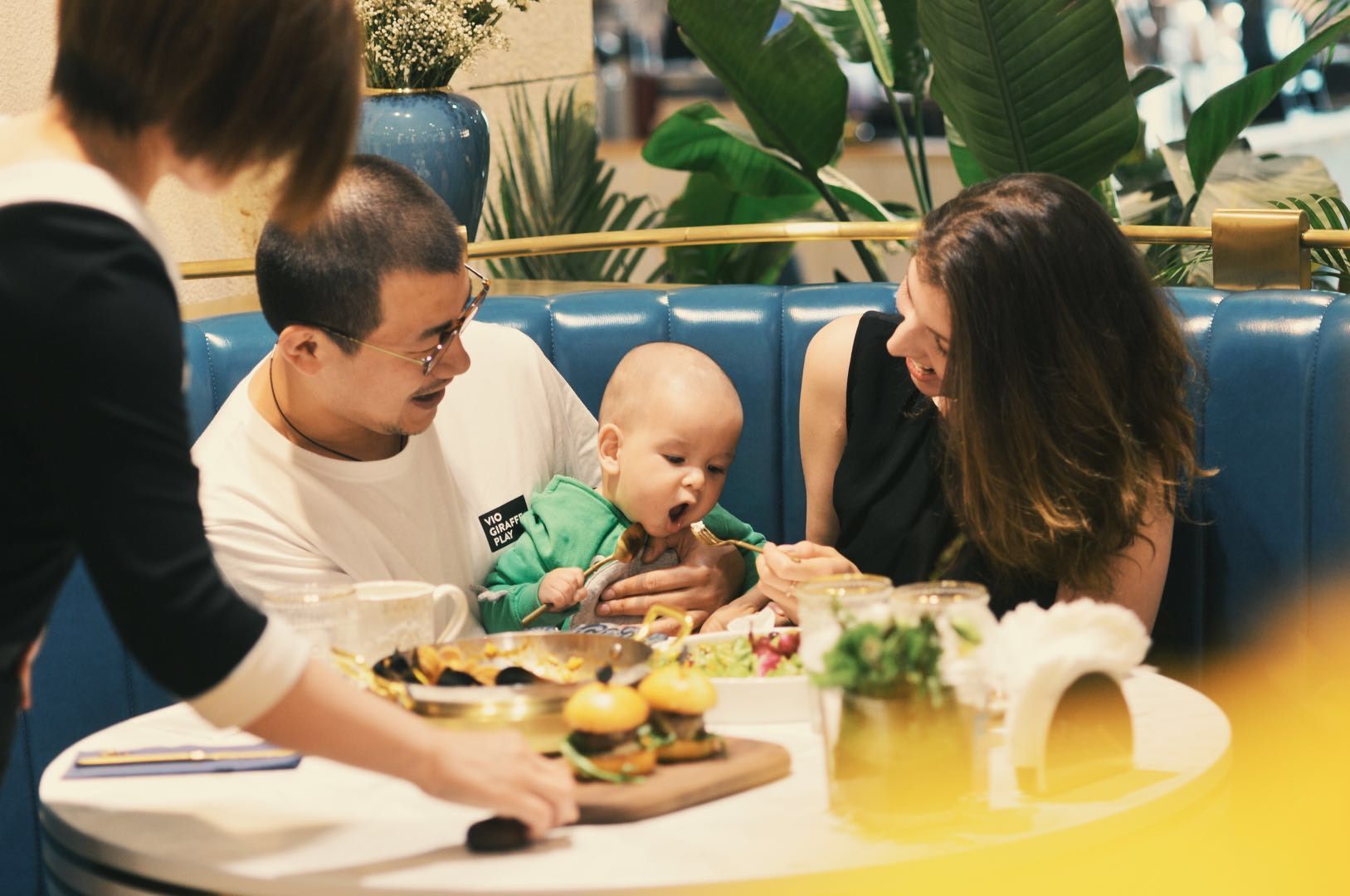 Сегодня пришли поддержать моего босса на открытии нового ресторана нашей сети?все понравилось,а сыну особенно ложки приглянулись,ну как обычно?
