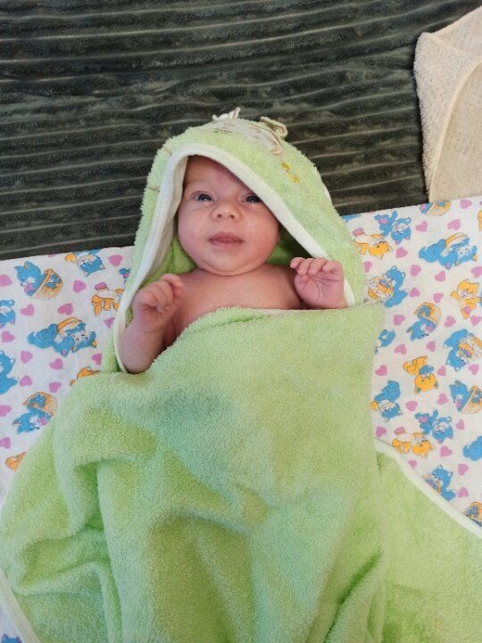 После окунания малыш вскрикнул через 5-6 секунд и сразу успокоился ☺