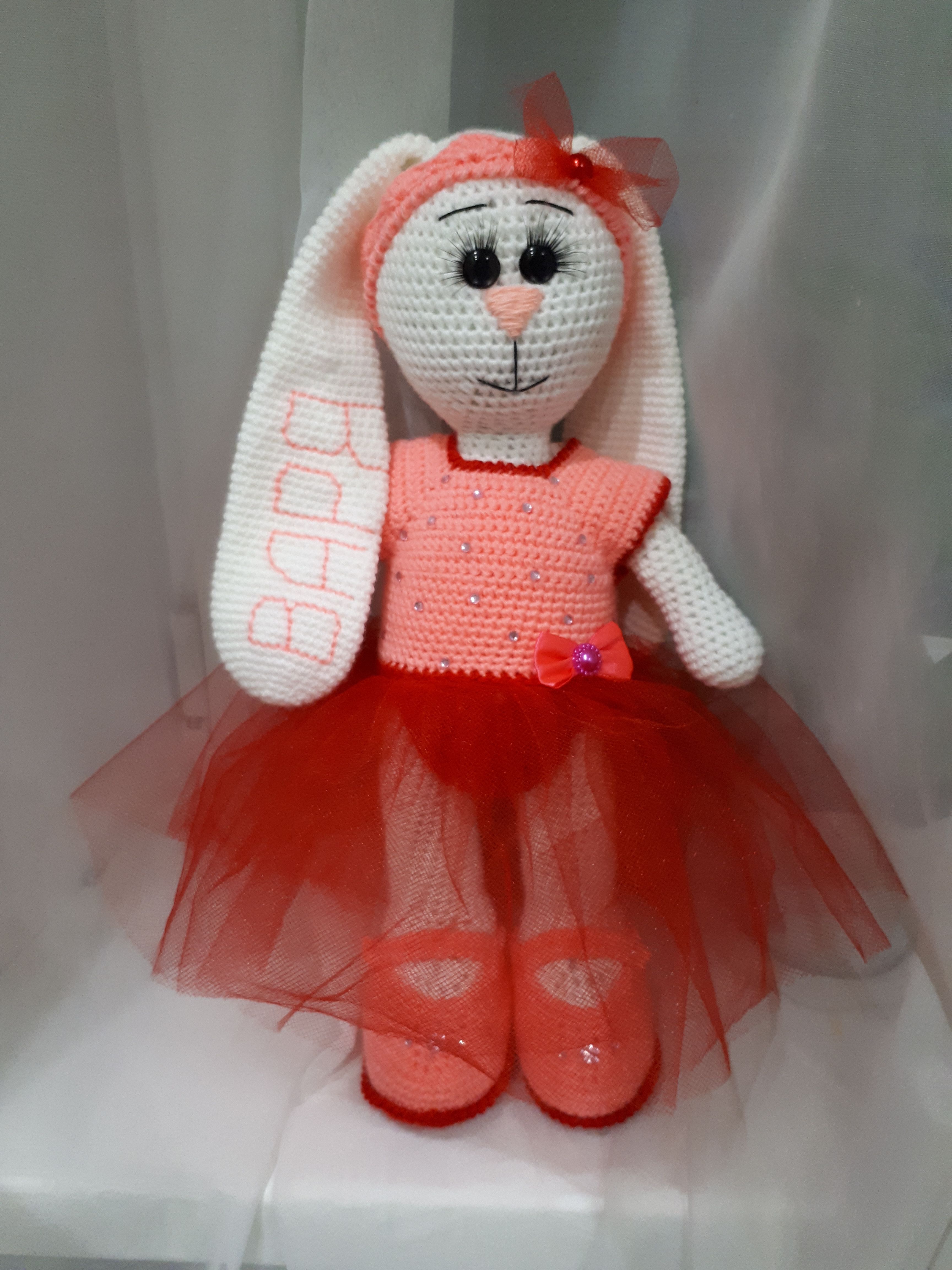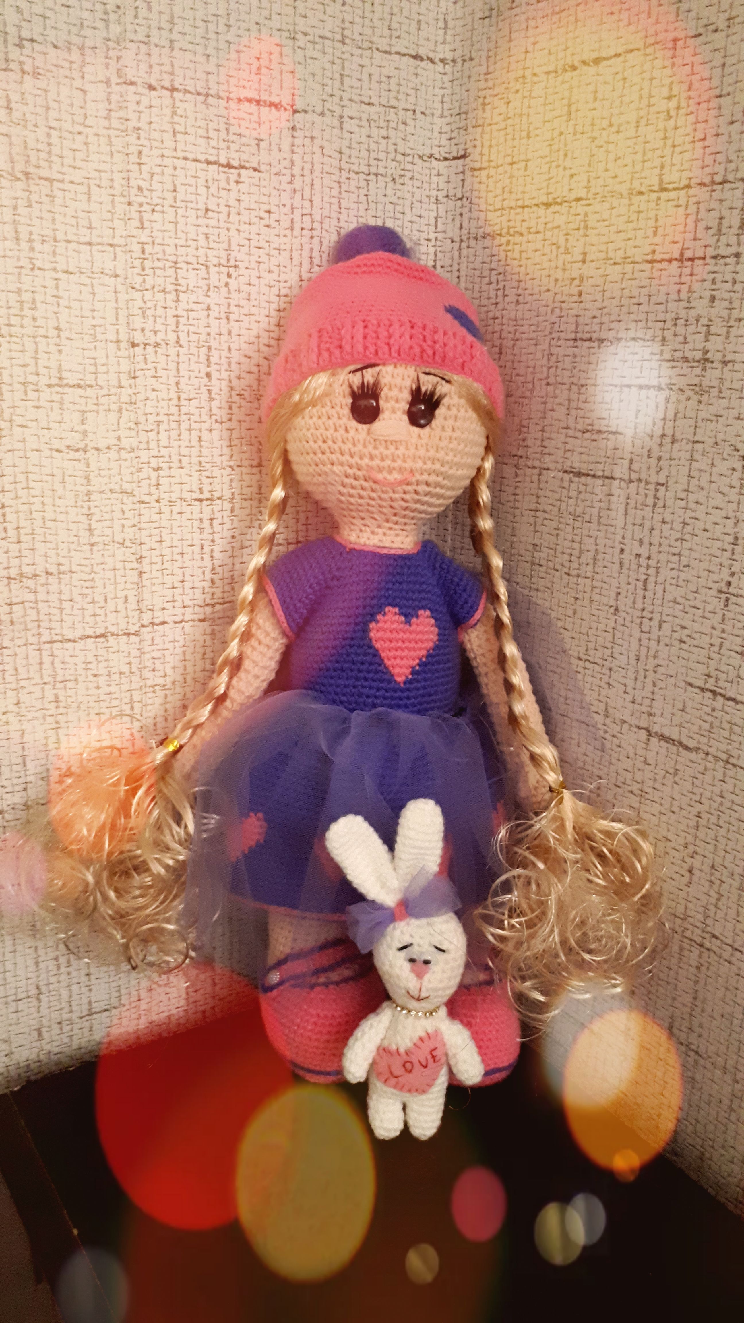 26 сентября 2018 13:05 +3 Зайка Тильда ростом 35см.Связанна на заказ.Наполнитель холофайбер..Прекрасный подарок.В восторге ни только дети но и взрослые)))